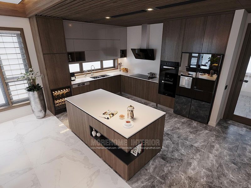 Morehome cung cấp dịch vụ tư vấn sản phẩm tủ bếp gỗ tự nhiên phong cách tân cổ điển đẹp tinh tế. Hình ảnh thực tế của công trình lắp đặt đã được thực hiện tại biệt thự Ecopark Hưng Yên.